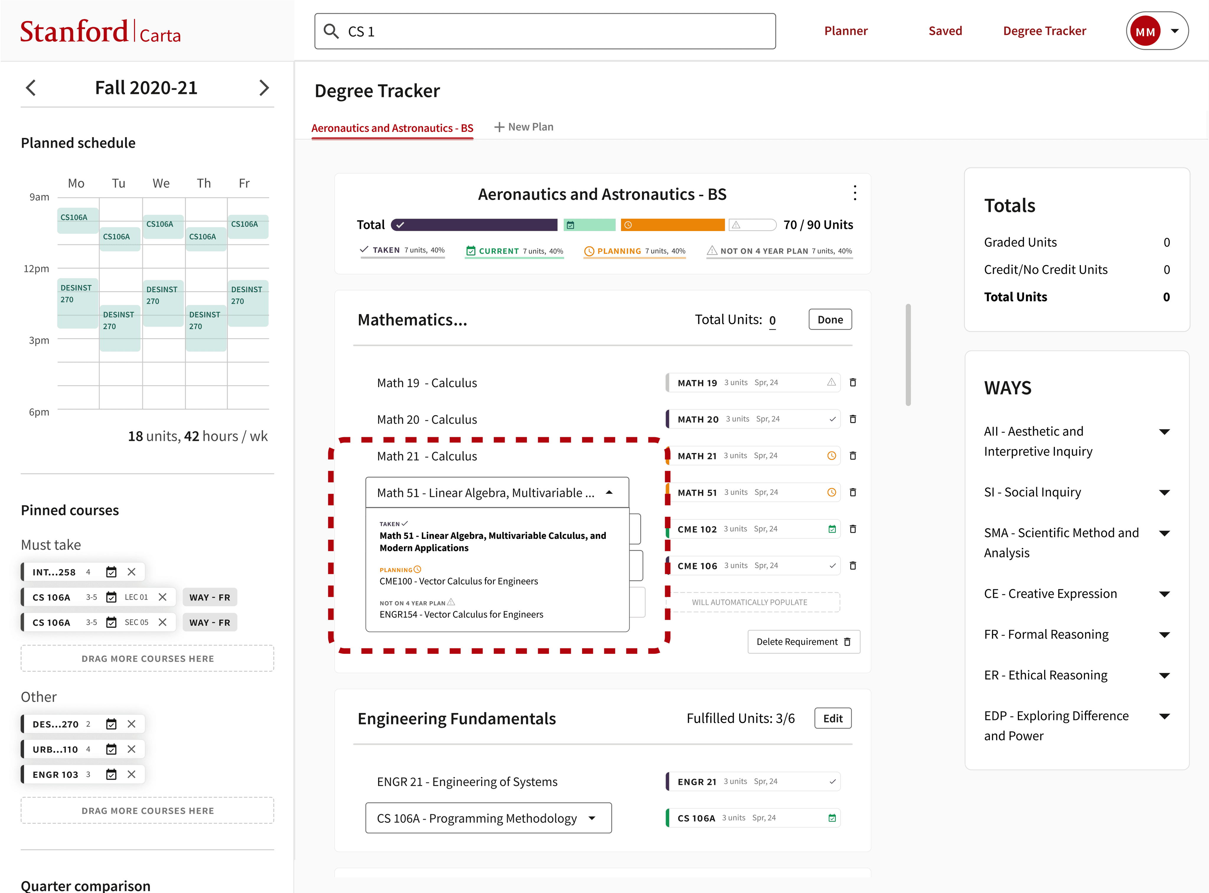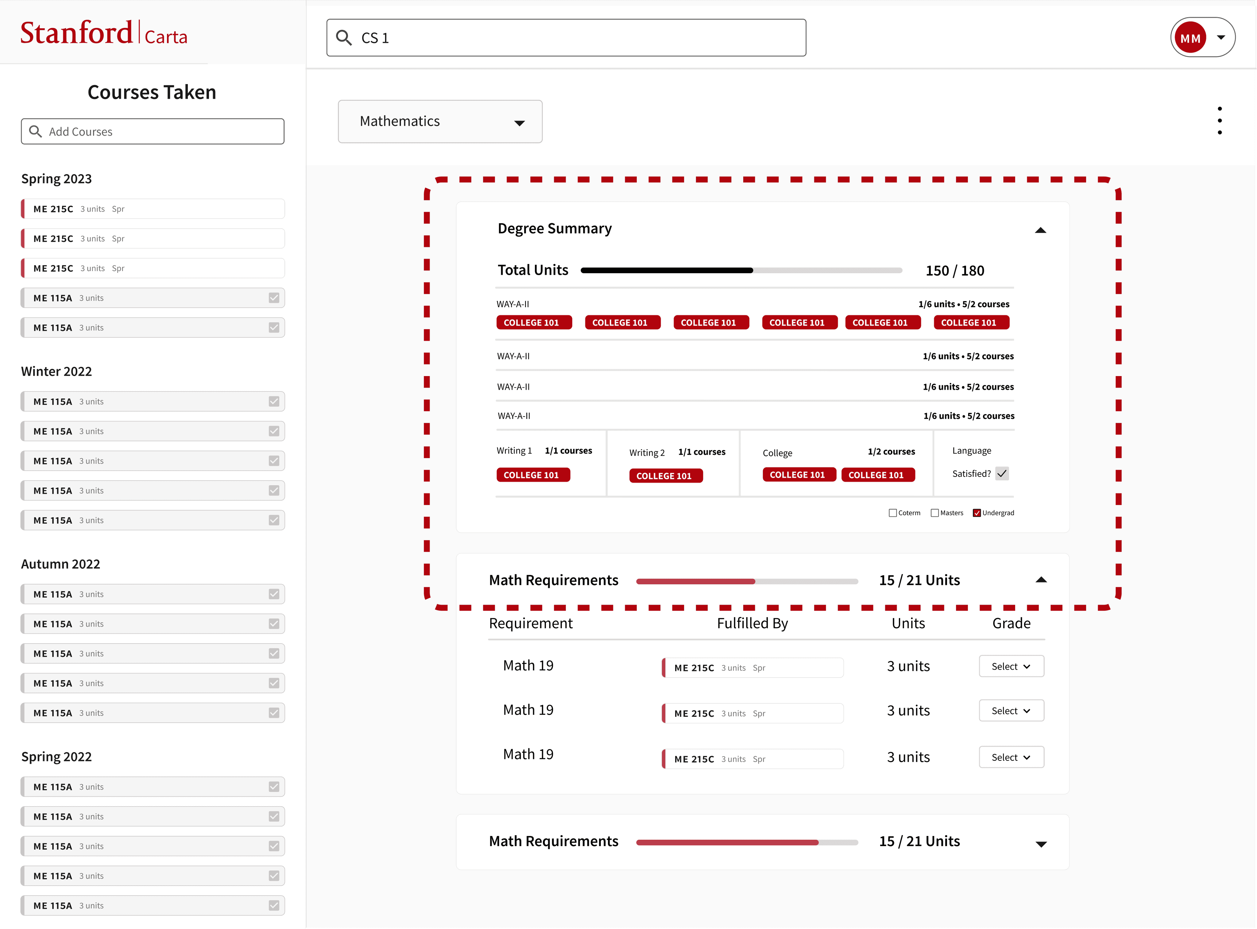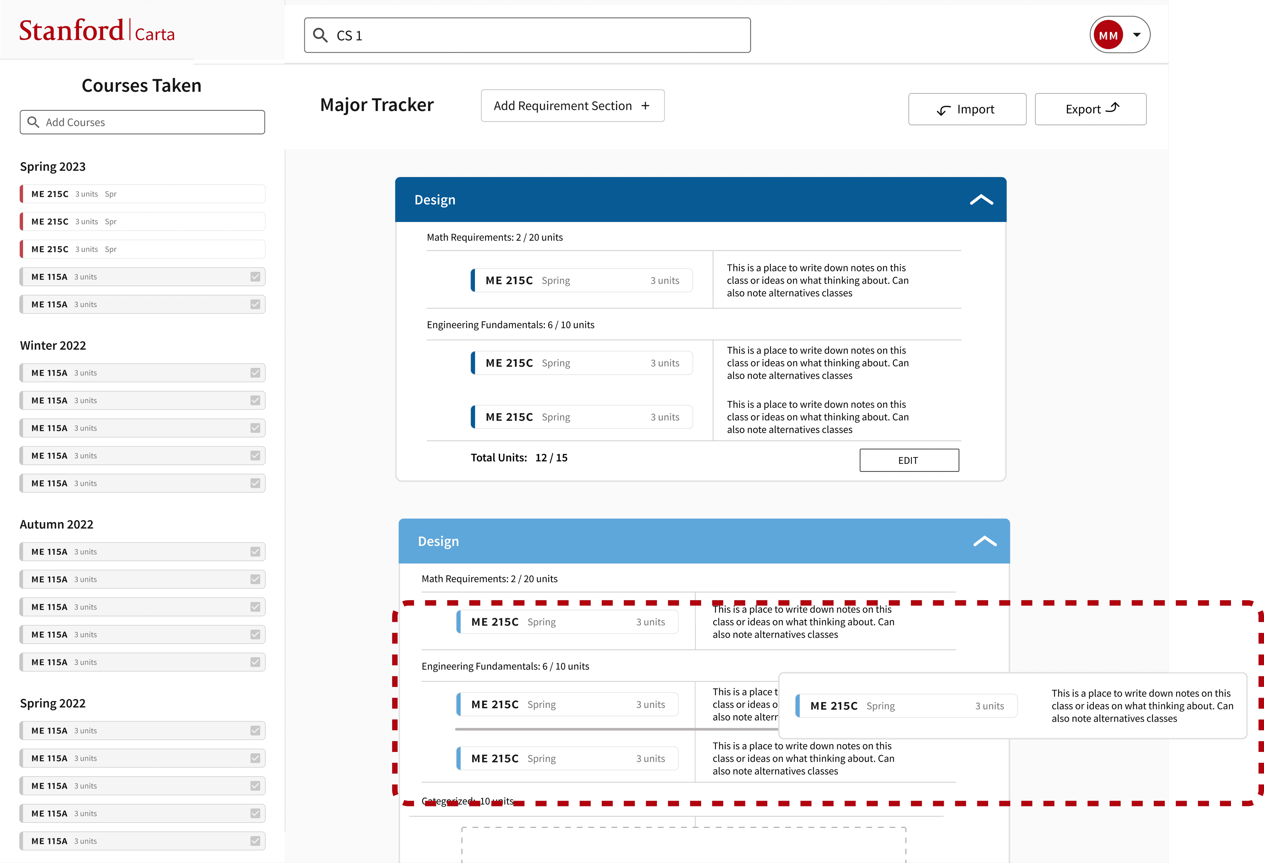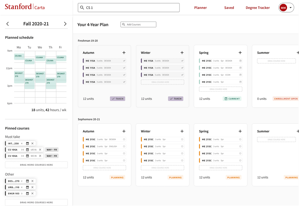 Researched and iterated a new feature for Stanford’s course planning platform.