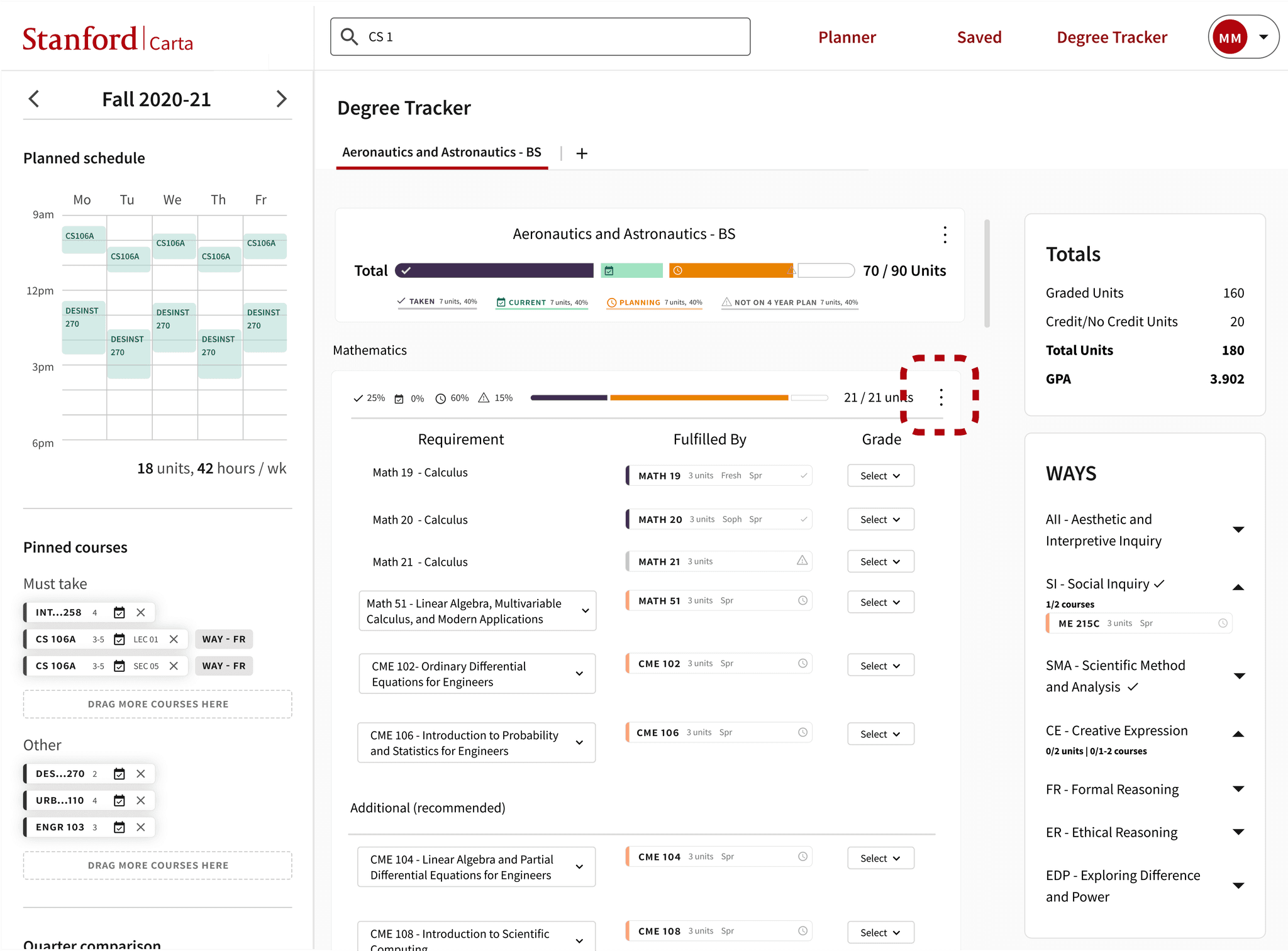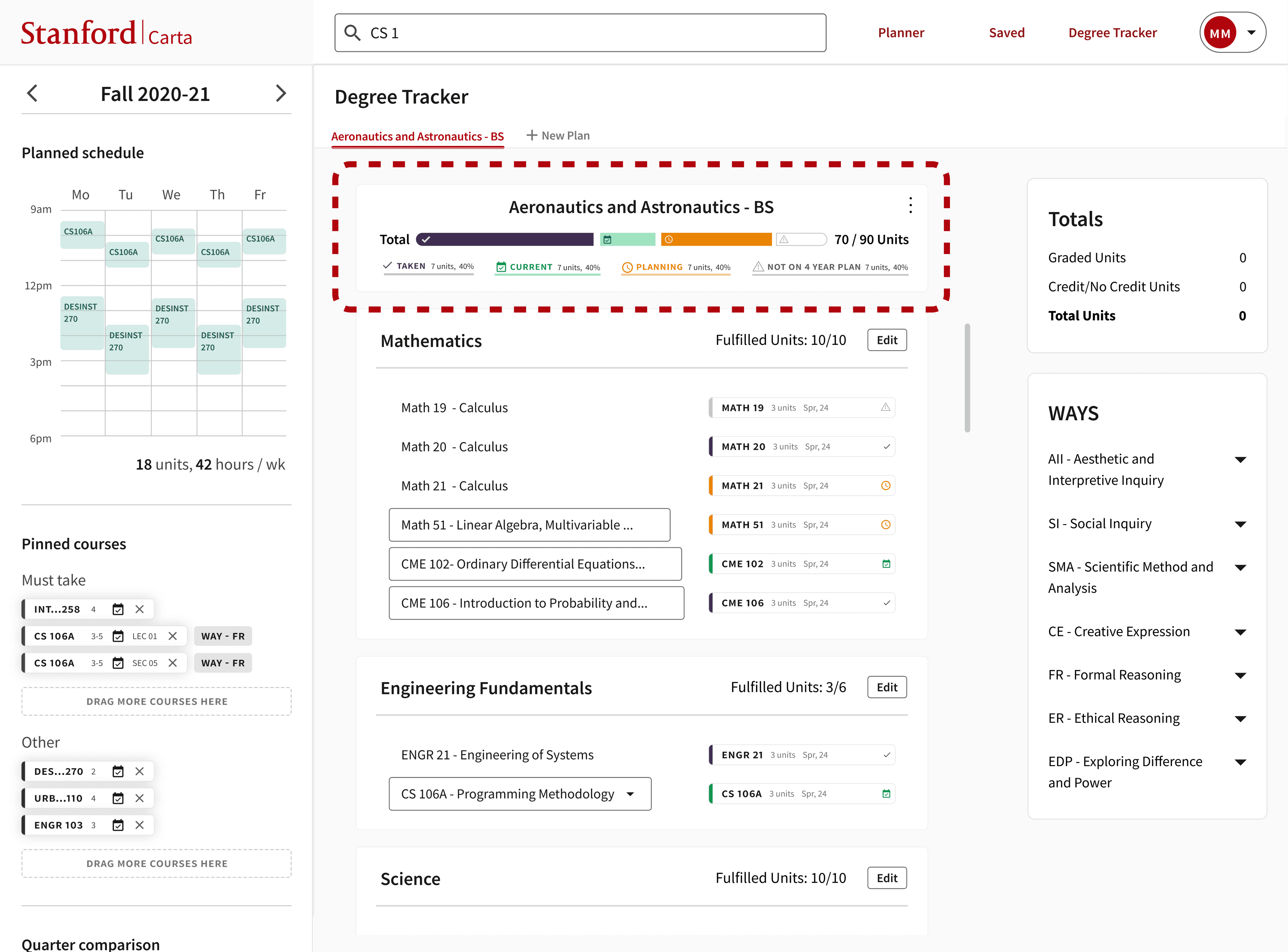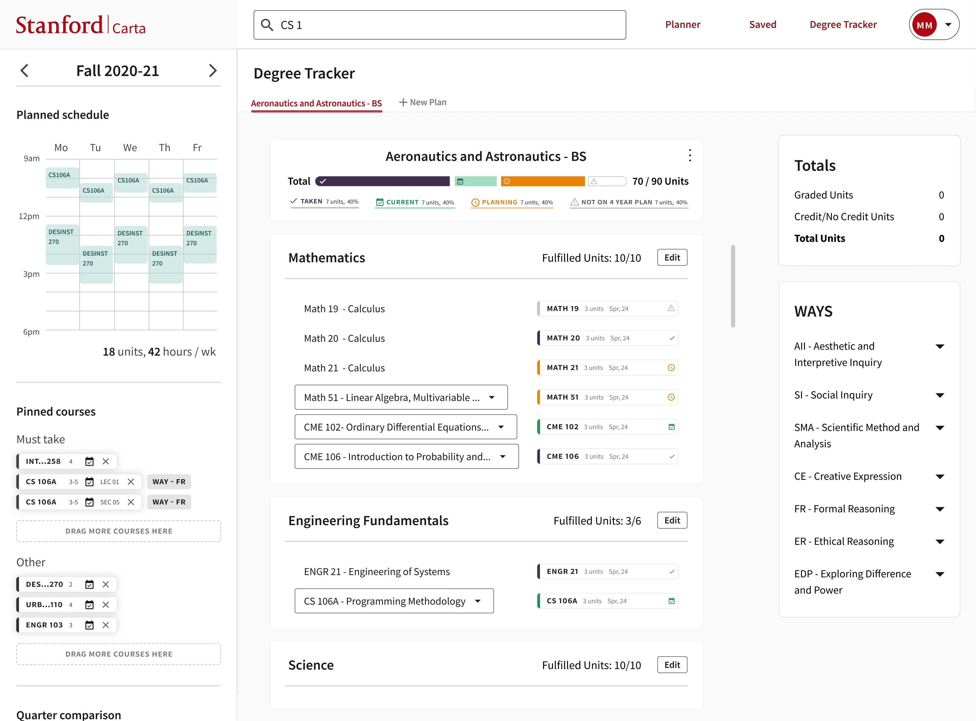 Researched and iterated a new feature for Stanford’s course planning platform.