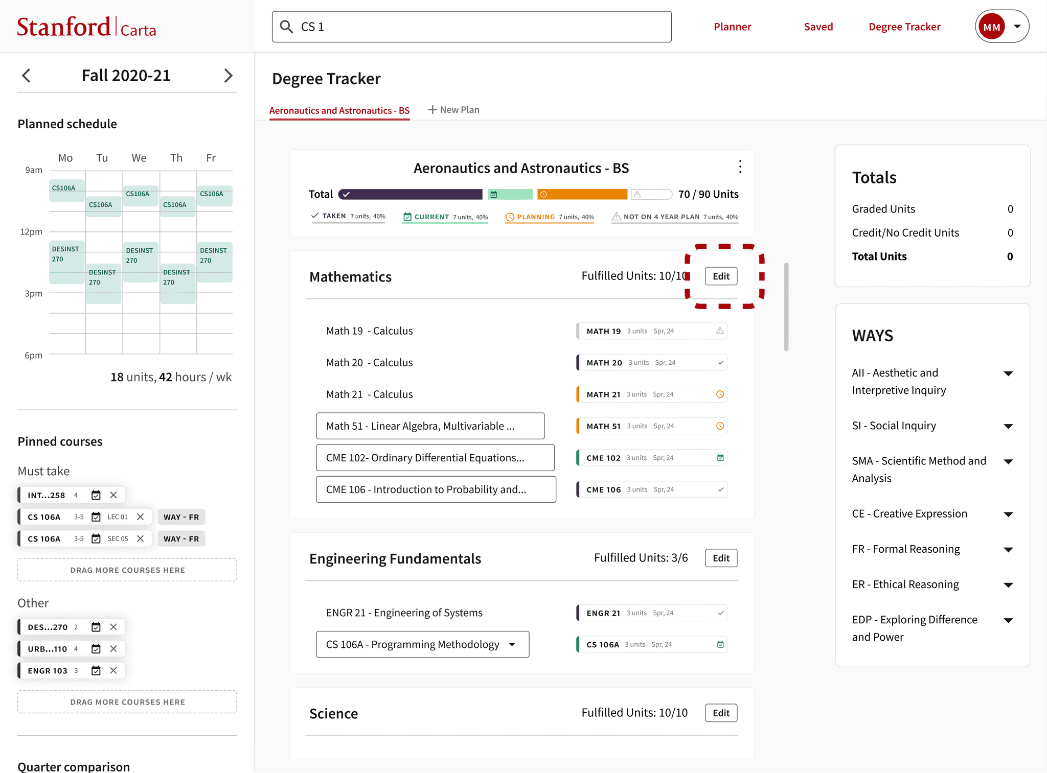 View and Edit Degree Progress: Customize degree plan by editing requirements to fit needs. Track WAYS and unit count requirements.