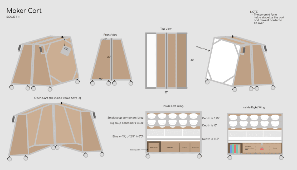 If I could redo the project, I’d focus on being more explorative with the Maker Cart designs. Once I settled on a prototype, I mainly made tweaks based on feedback instead of considering new ideas. I now believe that presenting more diverse design options upfront could have led to a more effective final product.