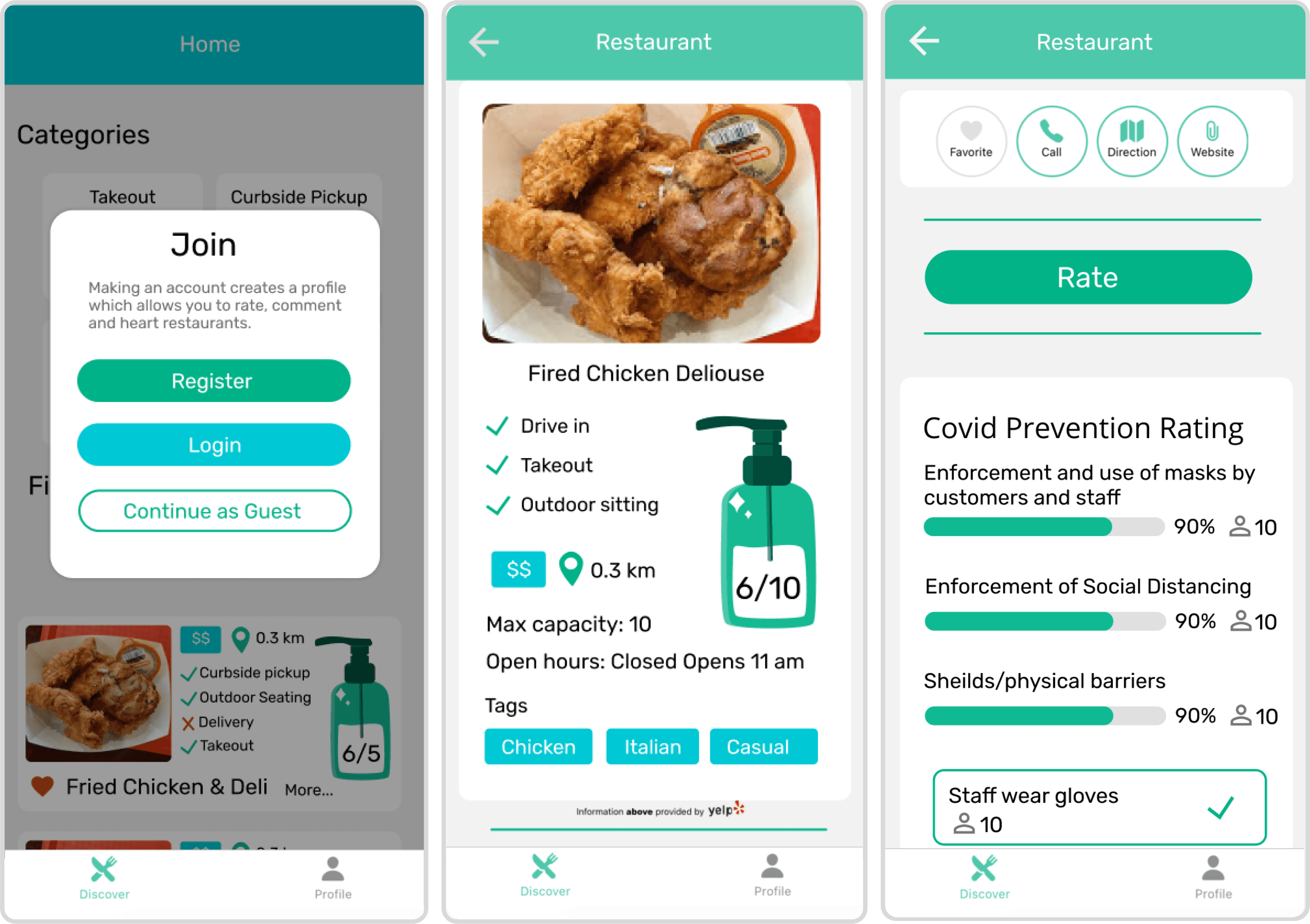 Programmed an app that helps diners find restaurants with COVID-19 safety measures.