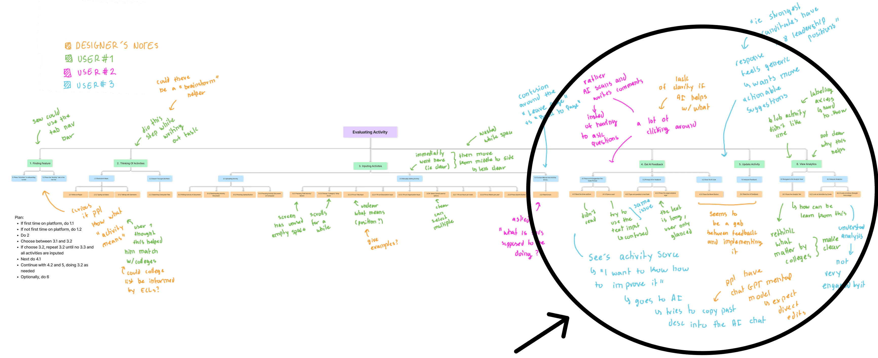 Annotated Task Breakdown of Evaluating Extracurricular Activities with 3 users