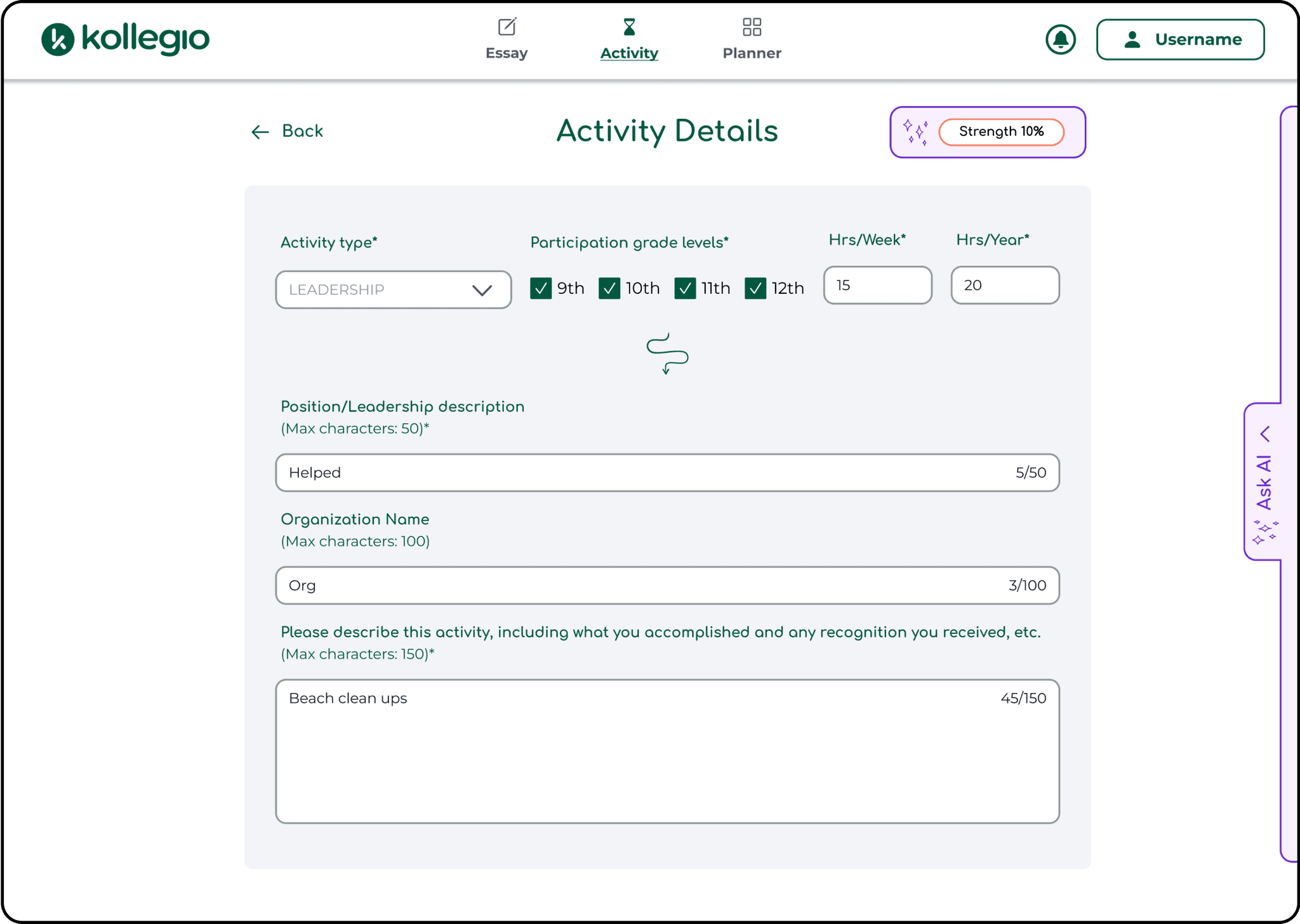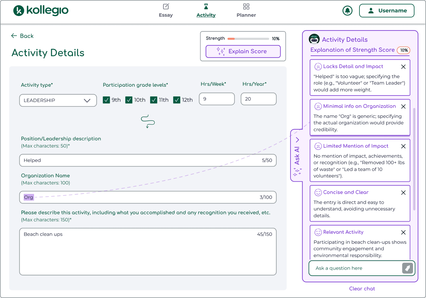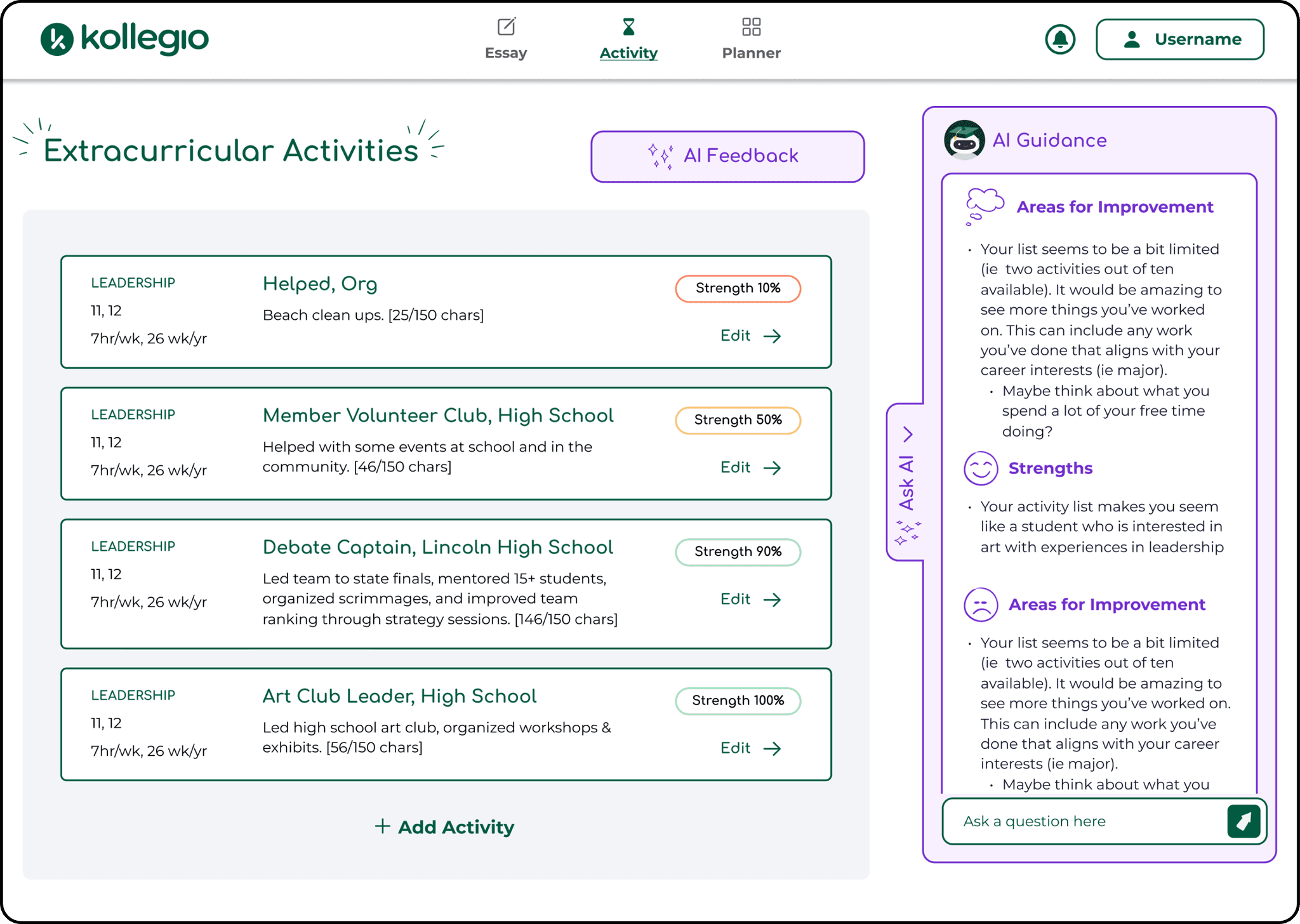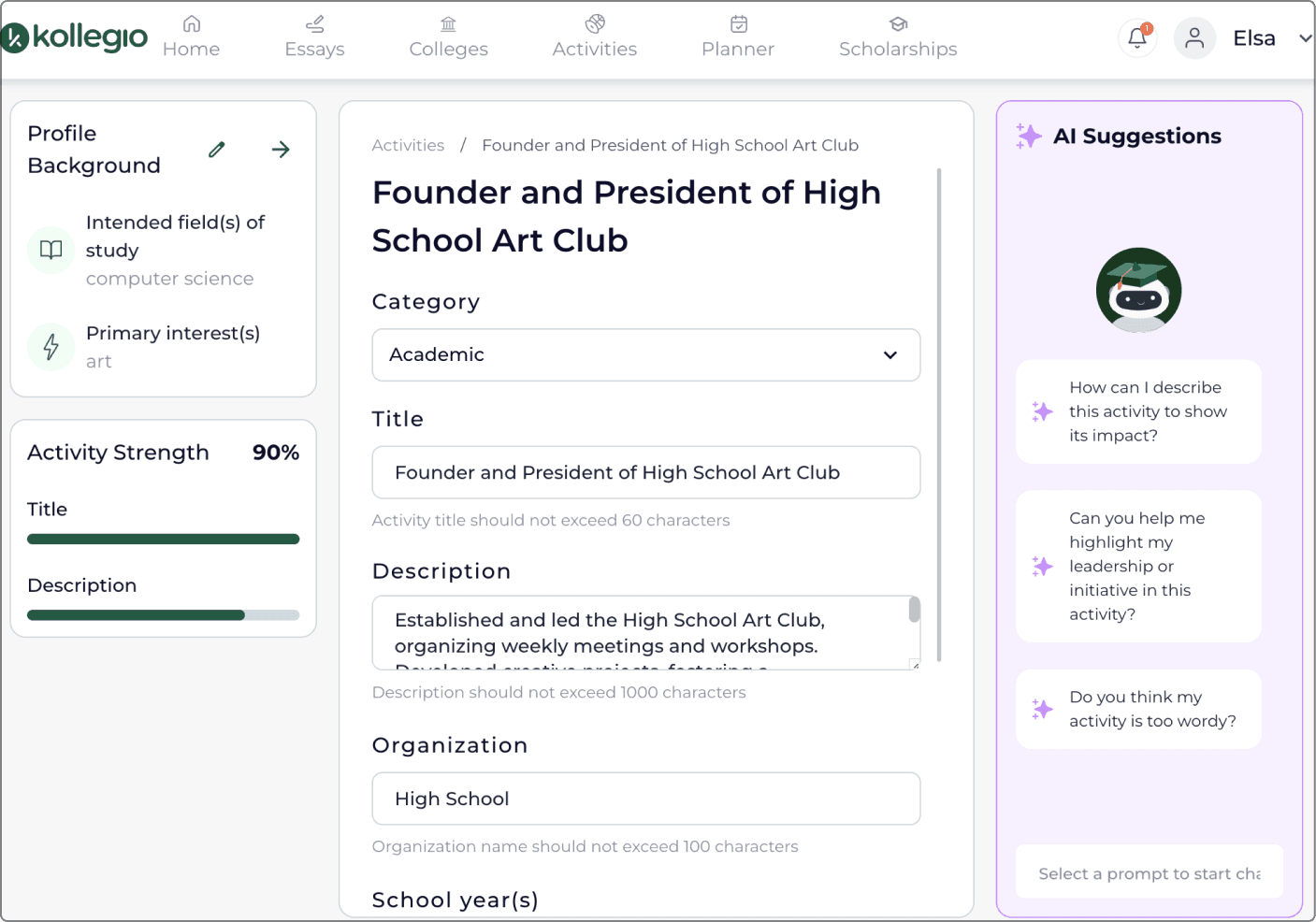 Company: Kollegio, a platform that helps users prepare for college applications using AI counseling (https://app.kollegio.ai/).