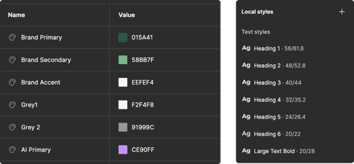 I created system variables in Figma for the colors and typography using the style sheet.